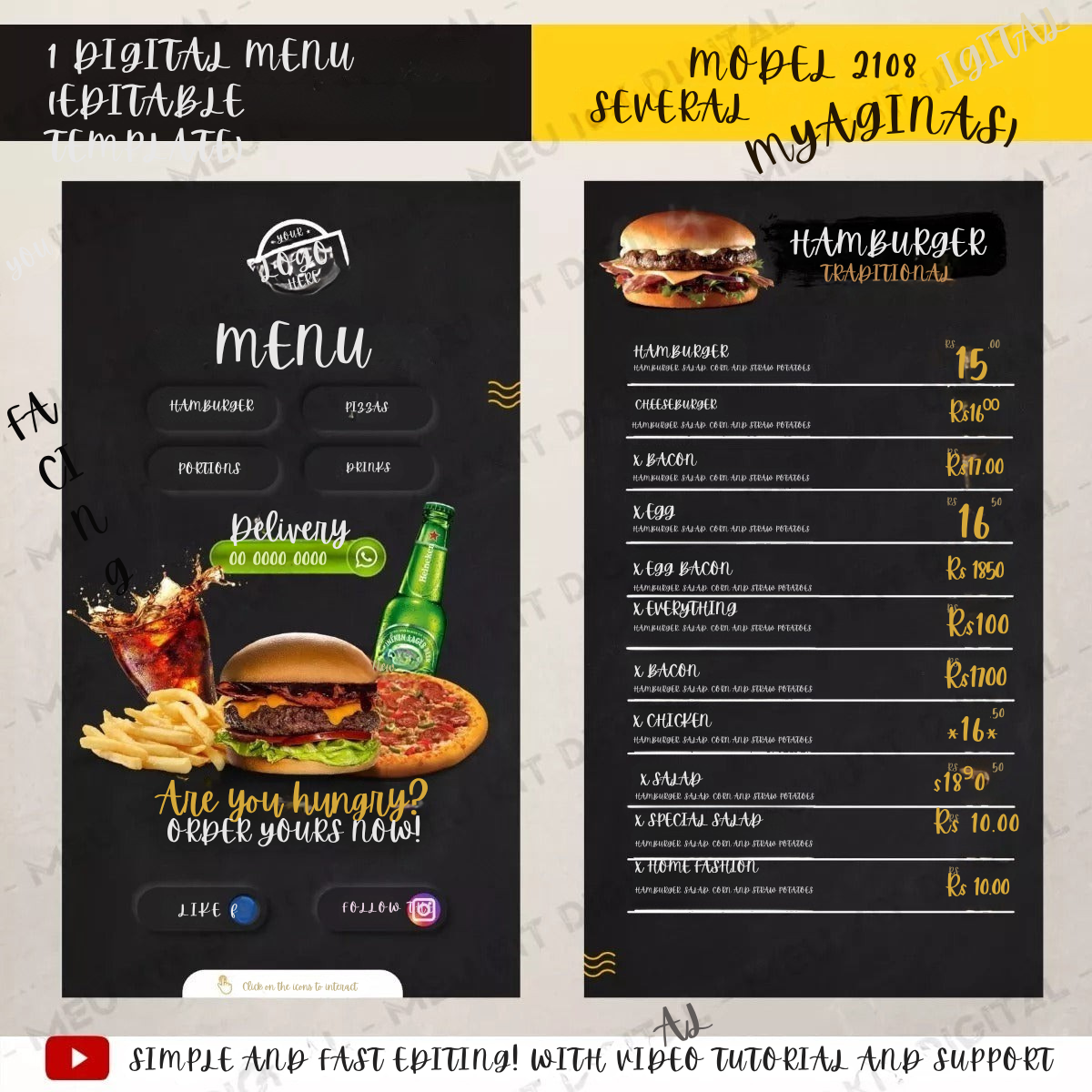 Cardápio Editável no Canva ( 8 páginas) + capa com Cartão virtualCardápio Profissional e Digital