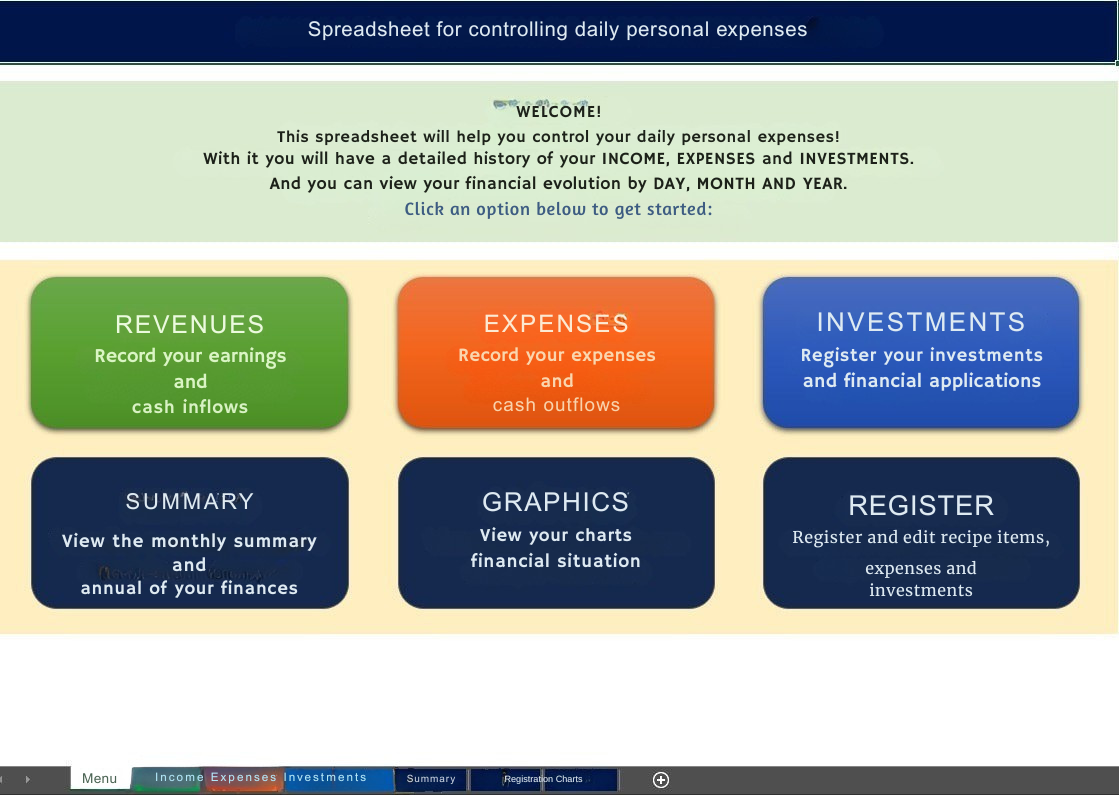 Planilha completa com todas as funções para o Controle Diário de suas Finanças Pessoais com Gráficos!